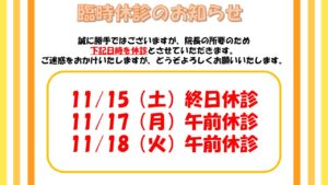 さて、11月の祝日についてお知らせです。11/3と11/24は終日休診となります。