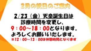 2月20日の診療時間変更のお知らせ