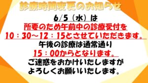 6月の診療時間変更のお知らせ